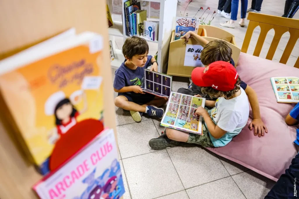 Havre de paix tout doux où les enfants peuvent se poser quand ils le souhaitent pendant le festival. L’accès est libre toute la journée, avec plein de livres sympas pour tous les âges à feuilleter tranquillement. Et petite surprise : chaque après-midi, les auteurs du festival viennent faire de petites lectures de 15 minutes toutes les heures. De quoi faire de belles découvertes !